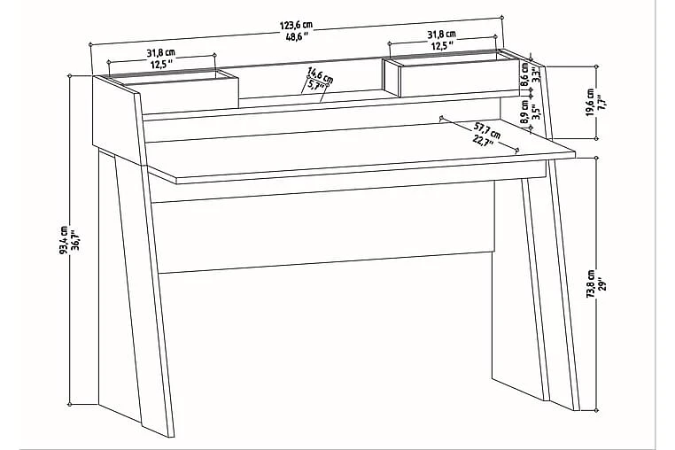 Andifli Skrivebord 59,6×93,4×123,6 Cm Med Oppbevaring