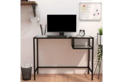Som alt det beste designet, er vårt enkle, men stilige databord i glass elegant og plassbesparende. Det gir et stort arbeidsområde, noe som gjør det til et veldig praktisk og allsidig møbel til bruk hjemme eller på kontoret.