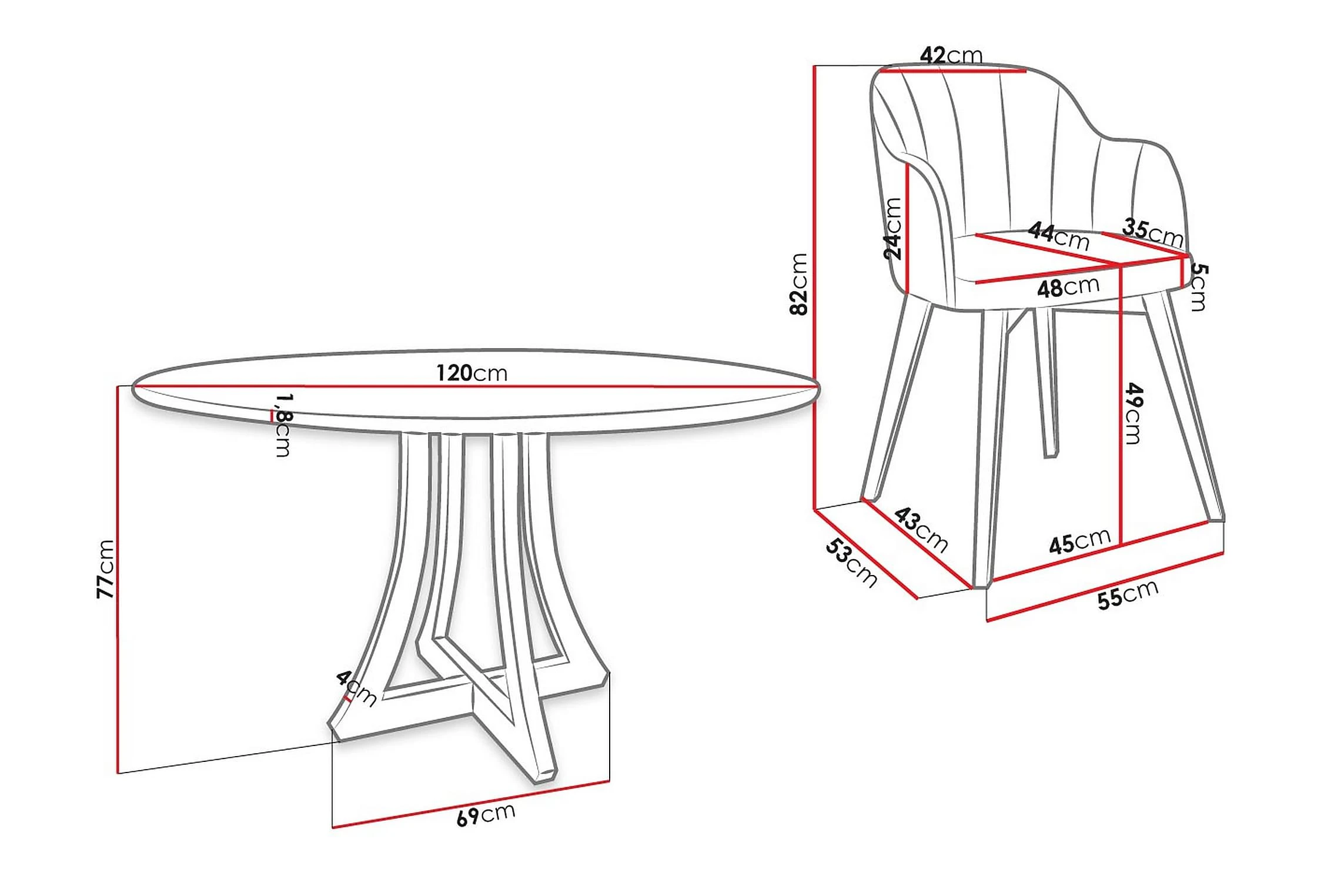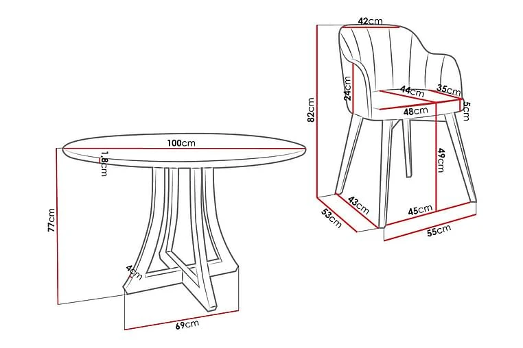 Hollan Spisegruppe Rund Hvit|Svart