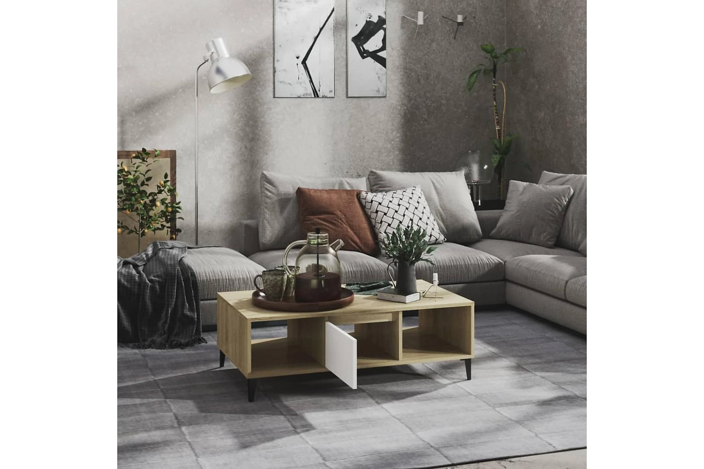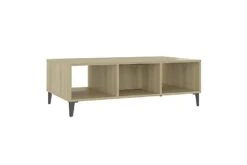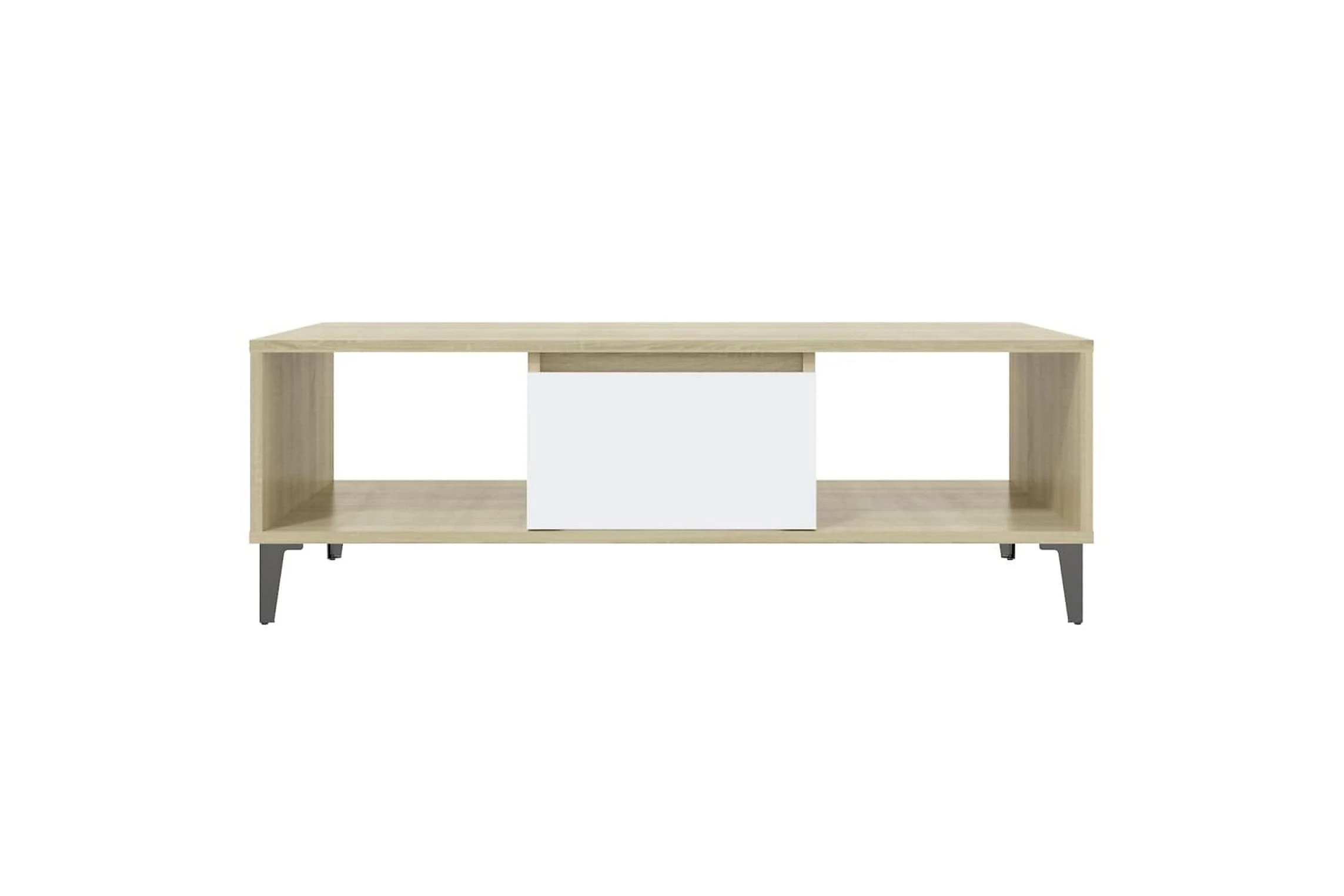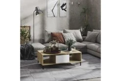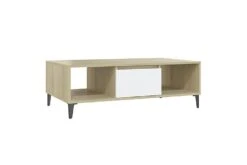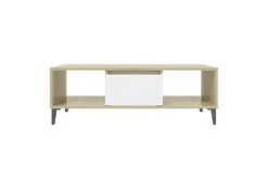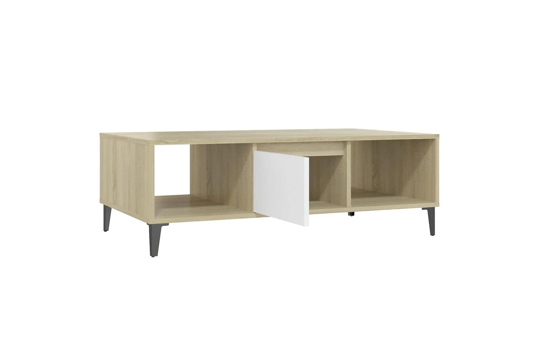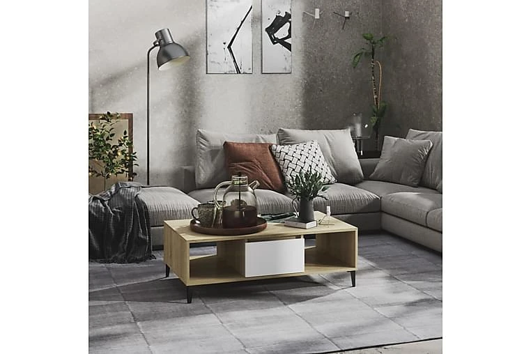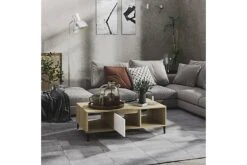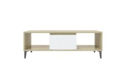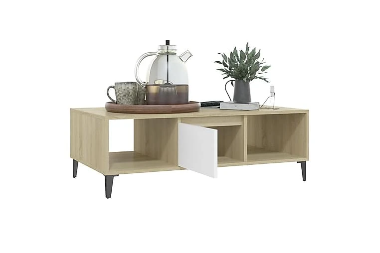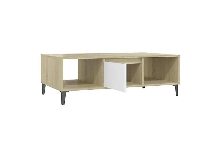 Dette sofabordet kan holde stuen fri for rot takket være oppbevaringshyllene og et rom med dør, som er perfekt for å plassere bøker, blader eller små ting du vil ha innen rekkevidde. Metallbenene gir ekstra stabilitet. Den solide bordplaten er også ideell for å plassere drinker, mat og andre pyntegjenstander. I tillegg er stuebordet enkelt å rengjøre med en fuktig klut.
