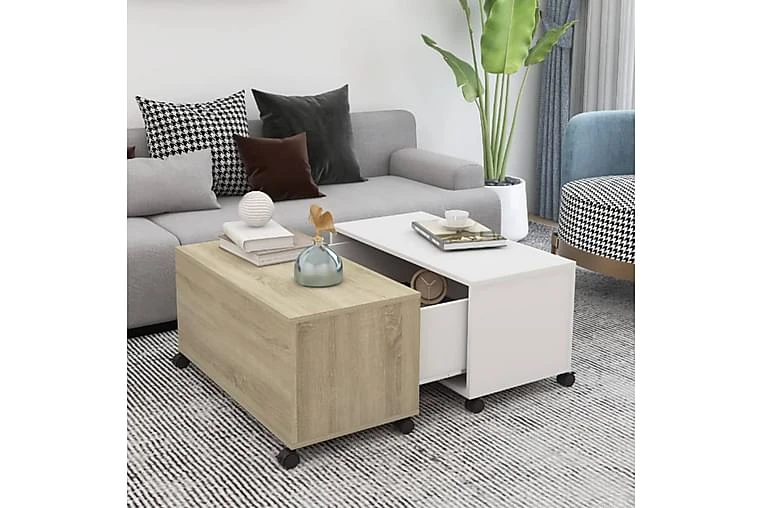 Bordet er stabilt og holdbart nok til å sikre lang levetid. Den solide bordplaten gir en sikker overflate hvor du kan plassere drikke, vaser, fruktskåler eller ornamenter. Dette sidebordet har også et uttrekkbart oppbevaringsrom under bordplaten, som kan brukes til å lagre blader, bøker, fjernkontroller og mer. Det er lett å vedlikeholde og rengjøre med en fuktig klut.