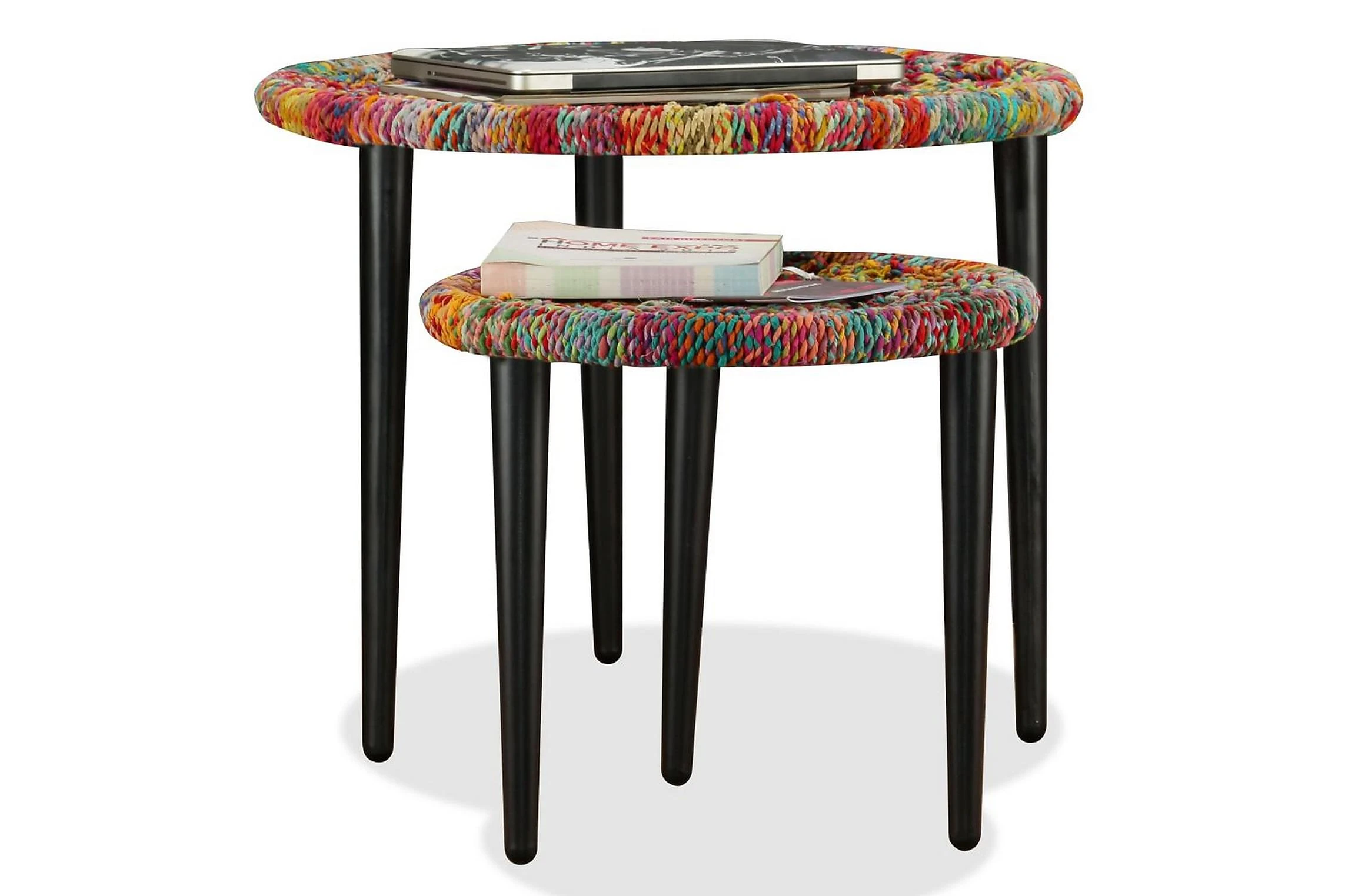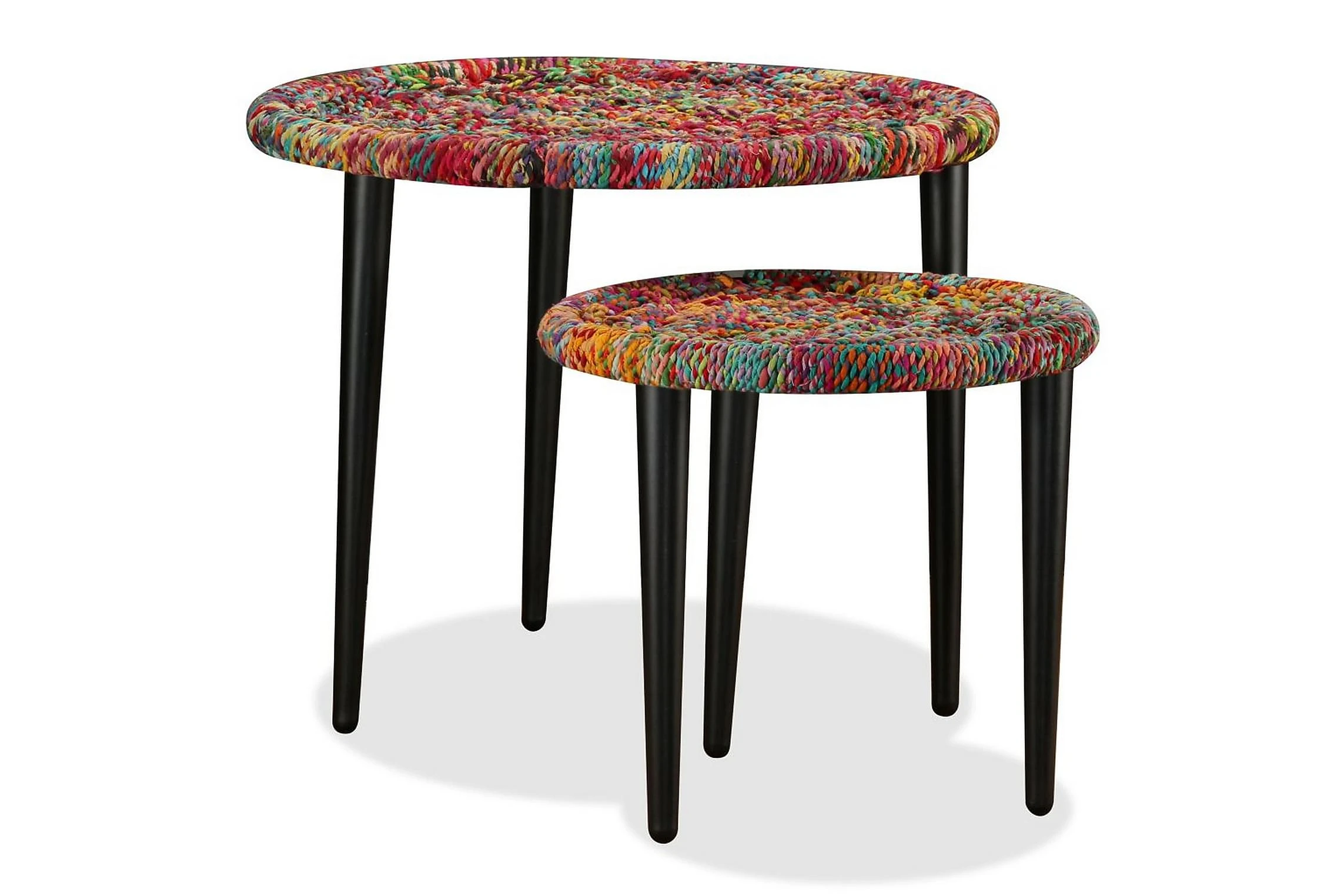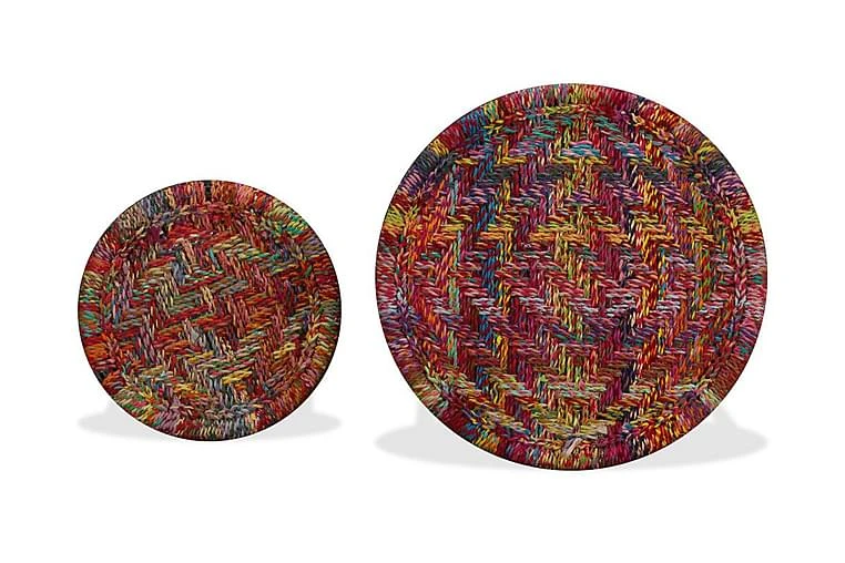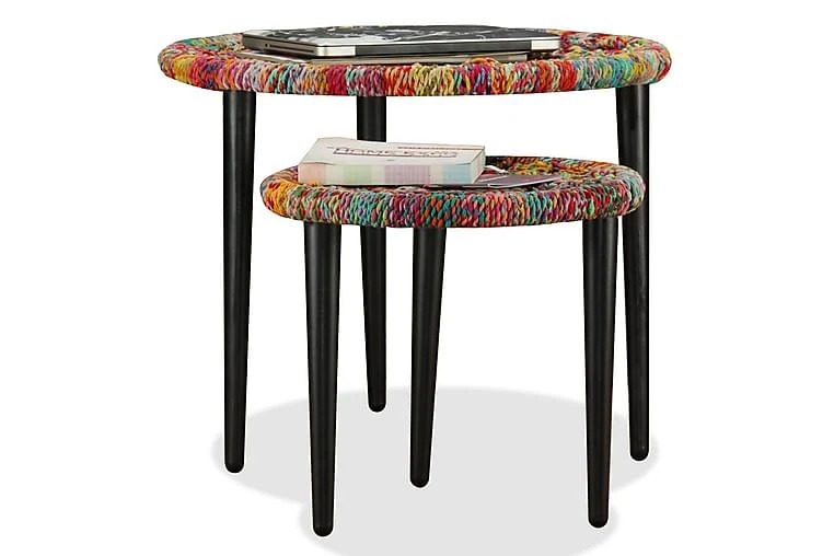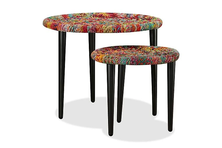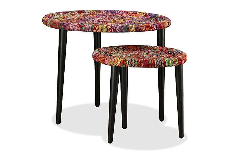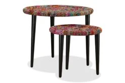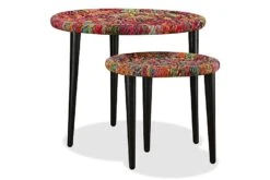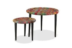 De stablebare bordene er både stilige og praktiske. Deres eksotiske design vil gjøre disse endebordene til et midtpunkt i ethvert oppholdsrom. Bordstativene utstråler en naturlig sjarm, mens bordplatene, hvor du kan plassere dekorative gjenstander som fruktkurver, vaser eller drikke og snacks, er dekorert med fargerike, vevde detaljer. De sterke stålbenene øker bordets stabilitet.