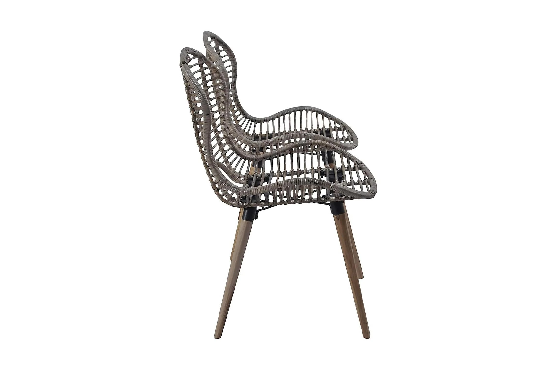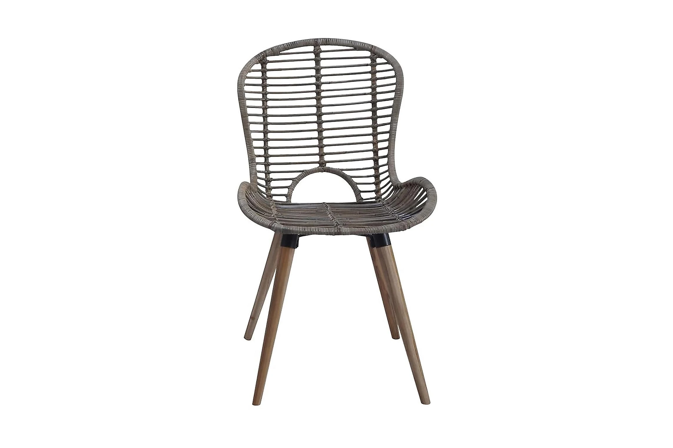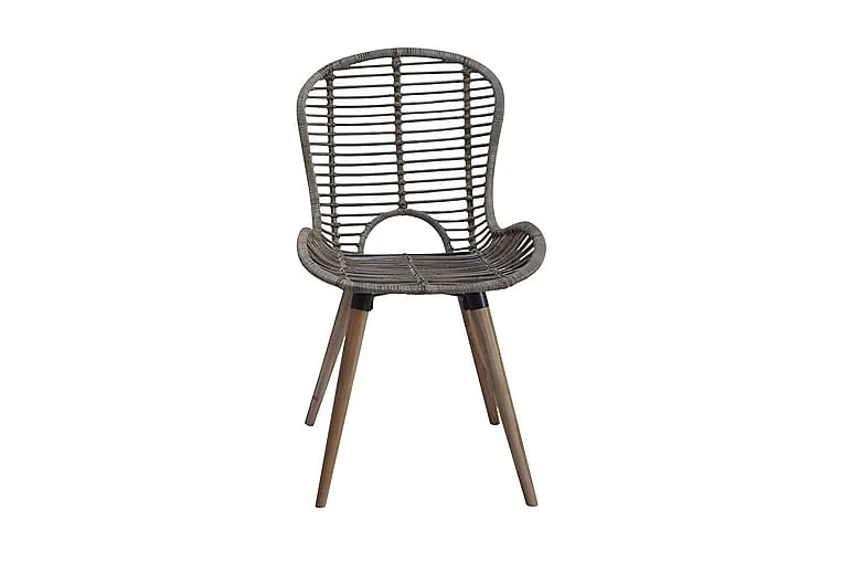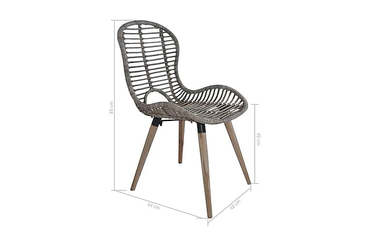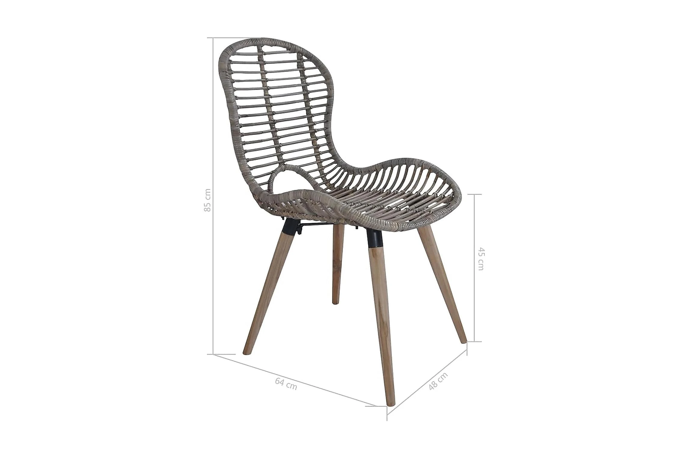 Takket være setene og armlenene i naturlig rotting, er stolene vannbestandige og lett å rengjøre. Trebenene sørger for at disse stolene er stabile og holdbare, og gir en gammeldags stil. Disse stolene passer for enhver innredning og er enkle å montere. Leveringen inkluderer 2 spisestoler.